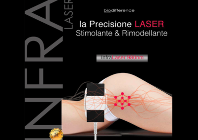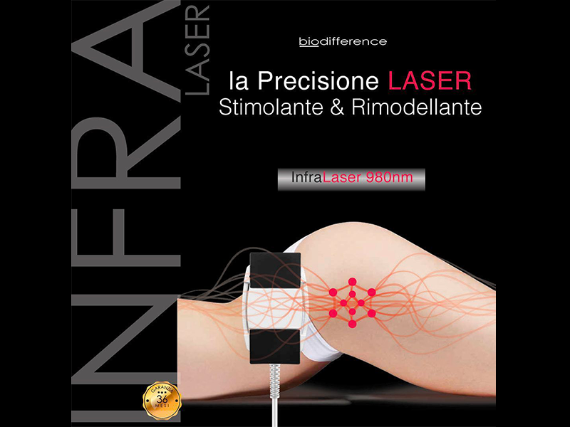 La nuovissima tecnologia “InfraLaser 980” by BioDifference per il rimodellamento e la tonificazione del corpo, ridefinisce la silhouette e dona alla pelle compattezza ed elasticità, sfruttando la sinergia di luce Laser e differenti onde elettriche che agiscono in modo mirato sui più frequenti inestetismi estetici che interessano il corpo, per risvegliare il metabolismo, migliorare la circolazione linfatica e il microcircolo, drenare, ossigenare, rigenerare e stimolare la produzione di nuovo Collagene, Elastina e Acido Ialuronico